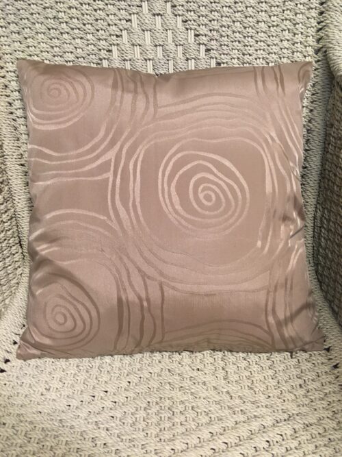 45cm x 45cm scatter cushion cover with zipper opening in bottom seam of cushion. Brown polyester fabric with whirlpool self print design.