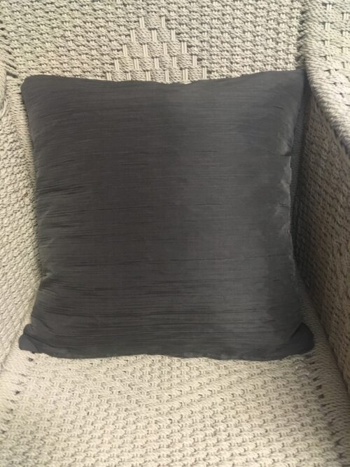 45cm x 45cm scatter cushion cover with zipper opening in bottom seam of cushion. Polyester blend fabric in charcoal colour with horizontal pleated texture.