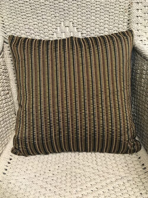 40cm x 40cm scatter cushion cover with zipper opening in bottom seam of cushion. Chocolate & bronze vertical stripe fabric vertical velvet stripes.
