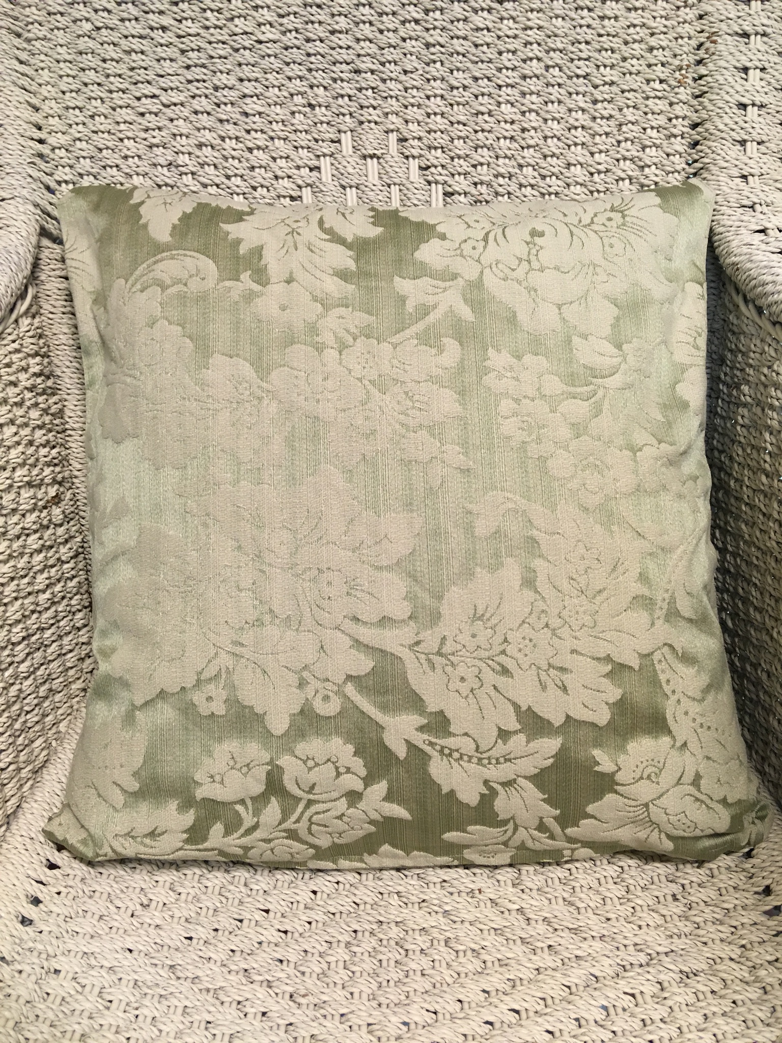 45cm x 45cm scatter cushion cover with zipper opening in bottom seam of cushion. Green fabric with Jacquard self print design.
