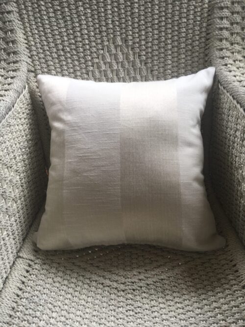 45cm x 45cm scatter cushion cover with zipper opening in bottom seam of cushion. Linen colour polyester blend fabric with alternating shiny & matt wide horizontal stripes.