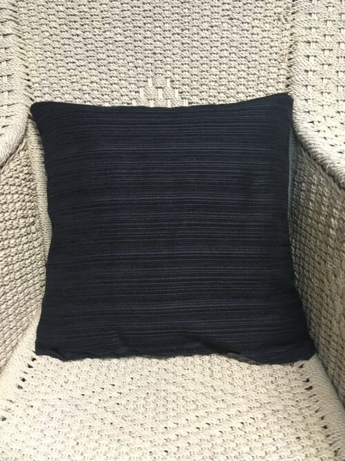 40cm x 40cm scatter cushion cover with zipper opening in bottom seam of cushion. Fabric has fine navy chenille stripes.