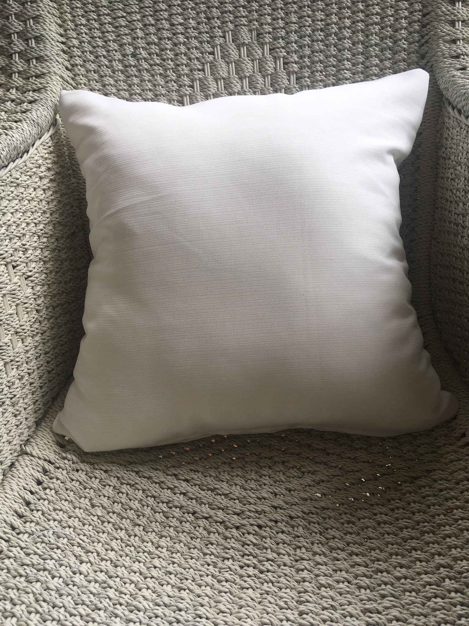 45cm x 45cm scatter cushion cover with zipper opening in bottom seam of cushion. Off white polyester blend fabric with ribbed horizontal texture.