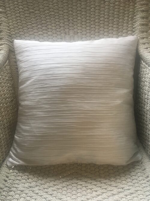 45cm x 45cm scatter cushion cover with zipper opening in bottom seam of cushion. Polyester blend fabric in pearl colour with horizontal pleated texture.