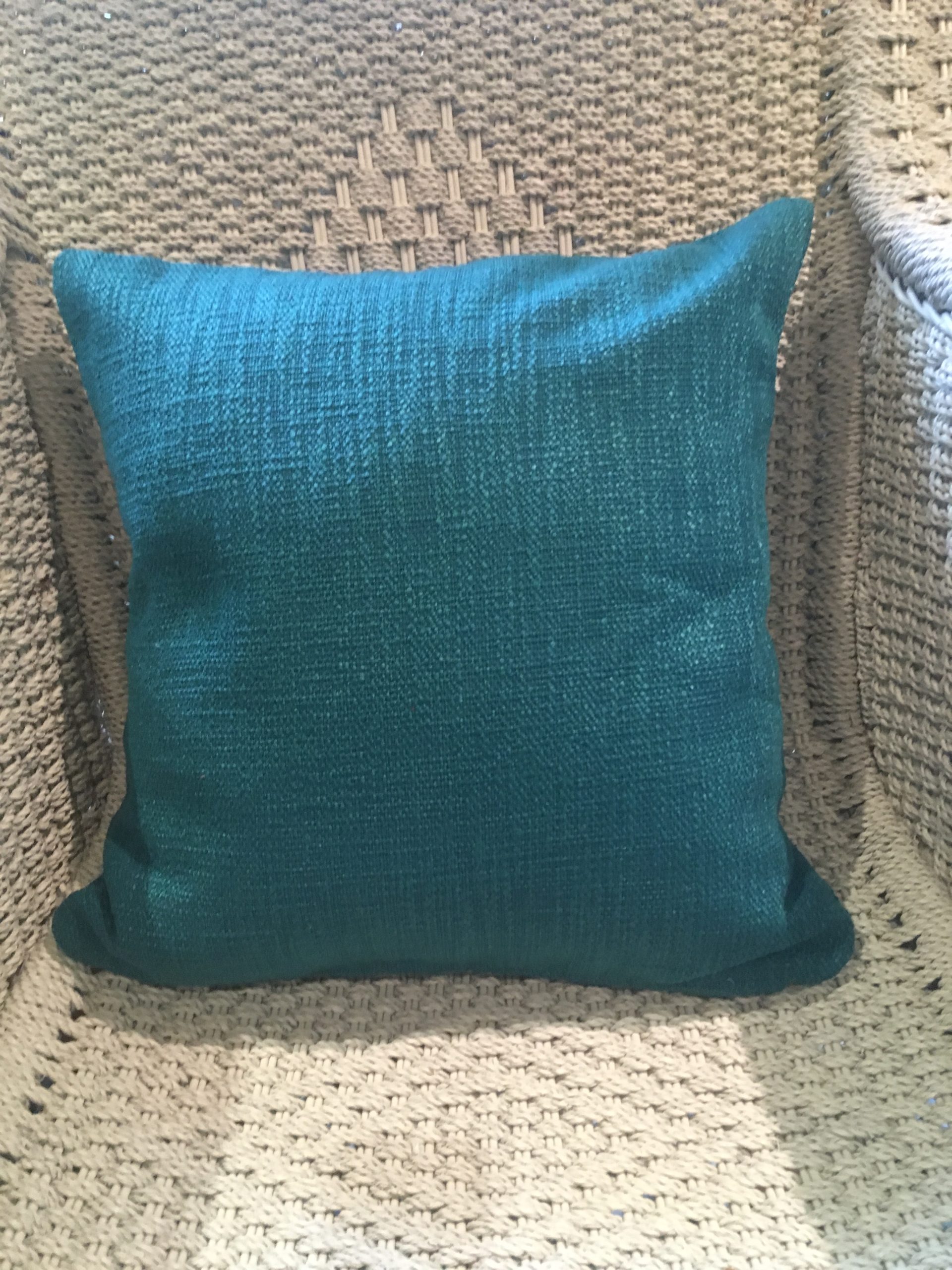 40cm x 40cm scatter cushion cover with zipper opening in bottom seam of cushion. Boucle fabric in teal colour. Light upholstery weight fabric.
