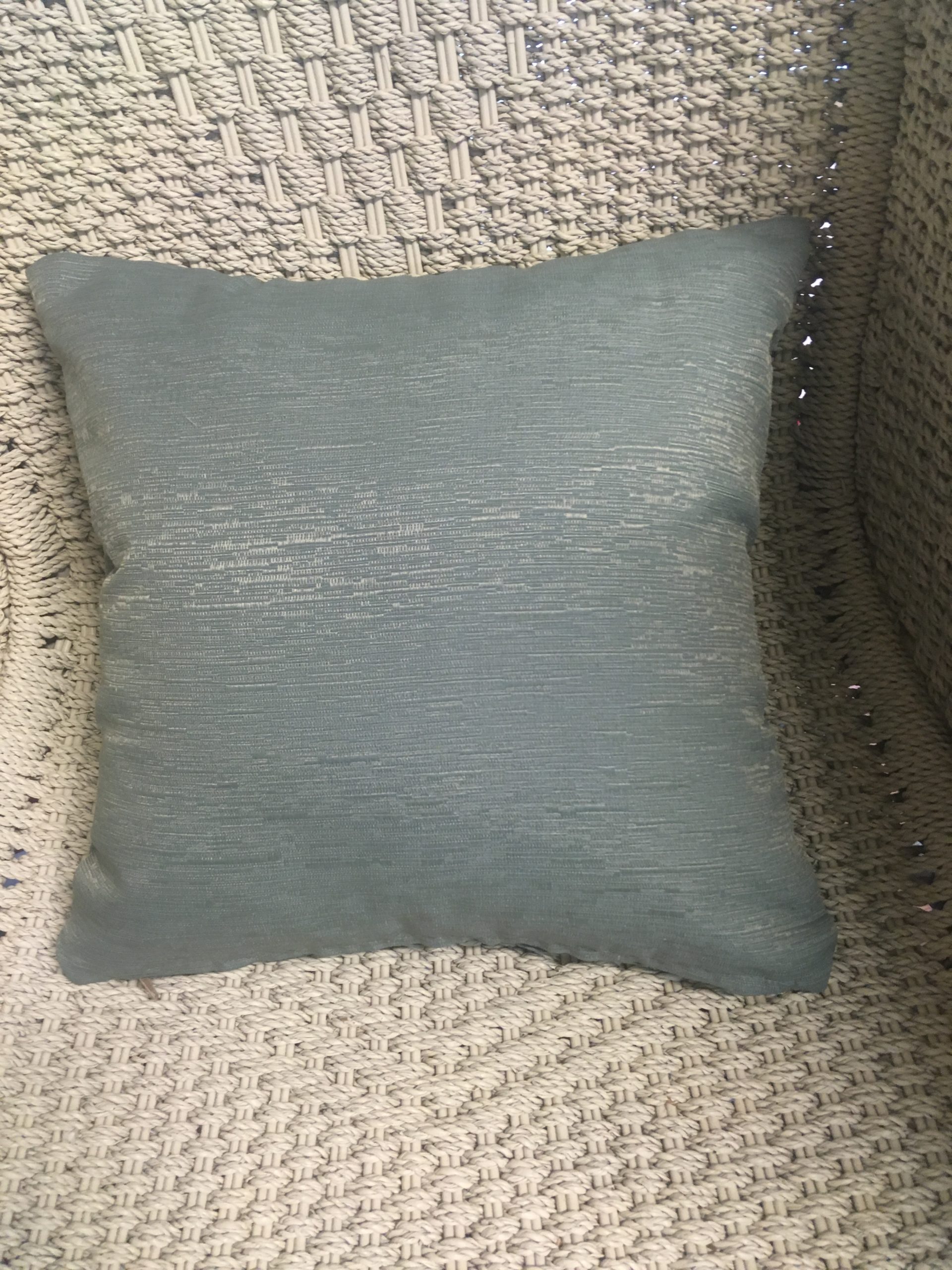 35cm x 35cm scatter cushion cover with zipper opening in bottom seam of cushion. Synthetic shiny textured fabric in medium green colour.