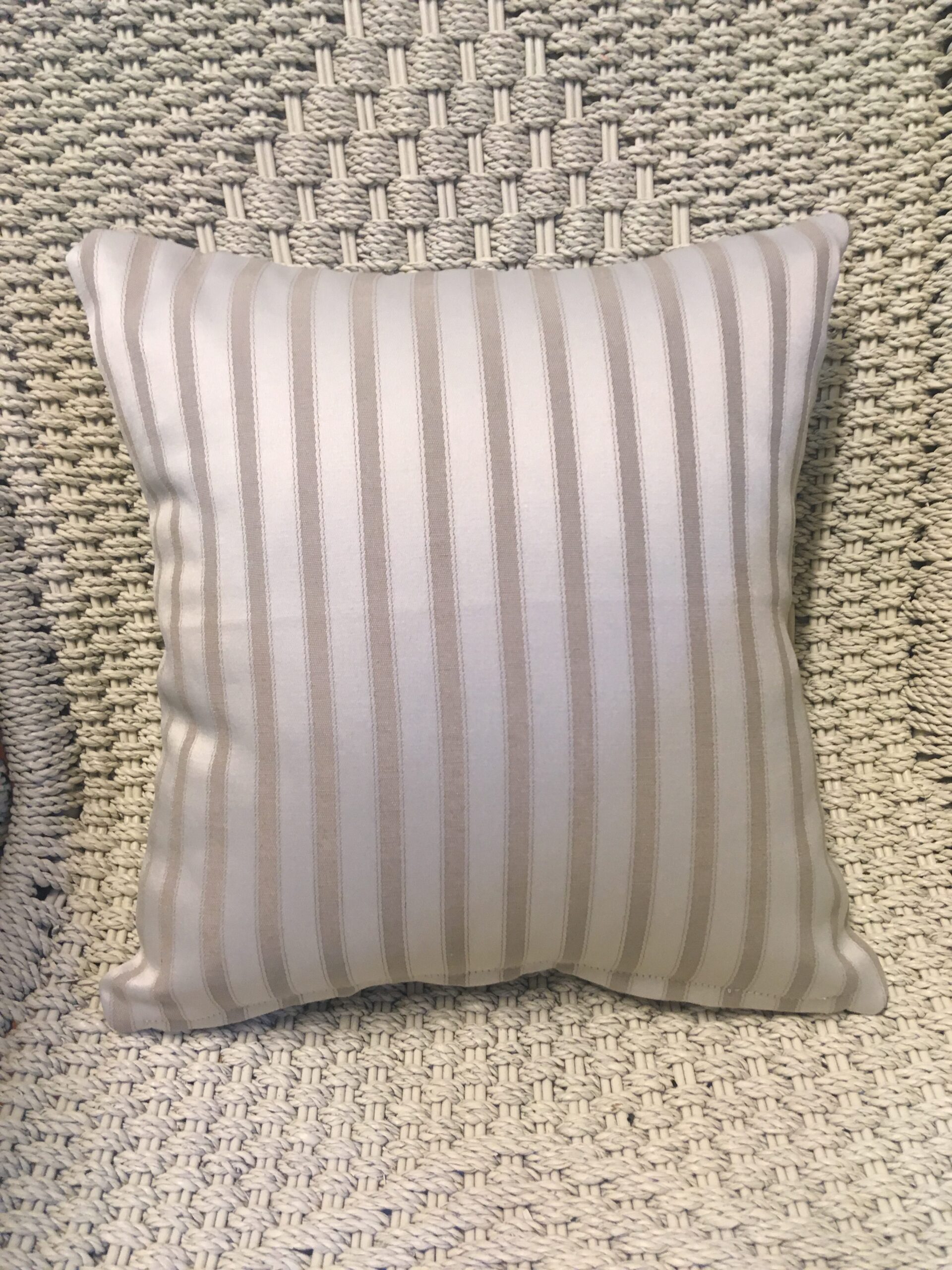 30cm x 30cm scatter cushion cover with zipper opening in bottom seam of cushion. Cotton blend fabric with two toned pale mocha floral design on one side & stripe design on the other side.